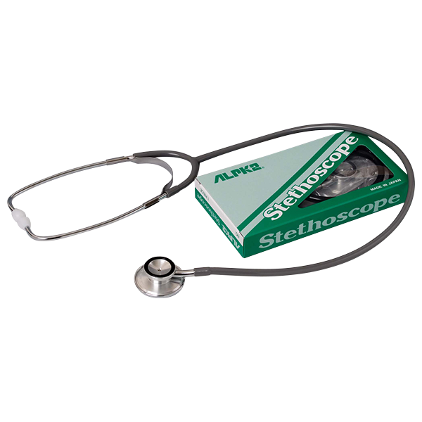 ALPK2® Double Head Stethoscope NO.FT-801. Bell & diaphragm, aluminum construction. Brass binaurals, PVC Y-tube, weight 130g.