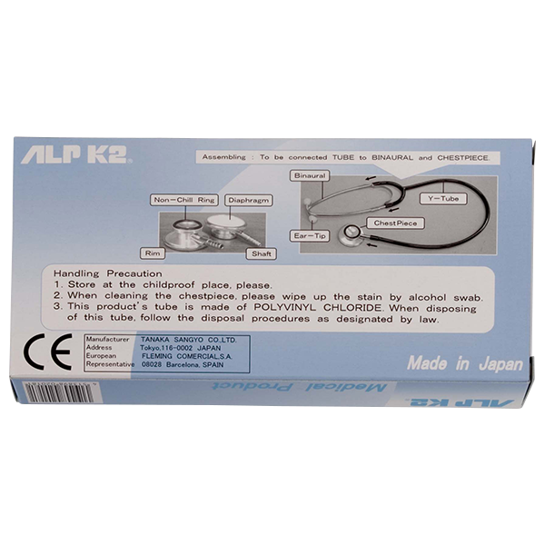 Estetoscopio doble cabeza ALPK2® NO.FT-801-EU (versión EU). Campana y diafragma, construcción de aluminio. Binaurales de latón, peso 130g.