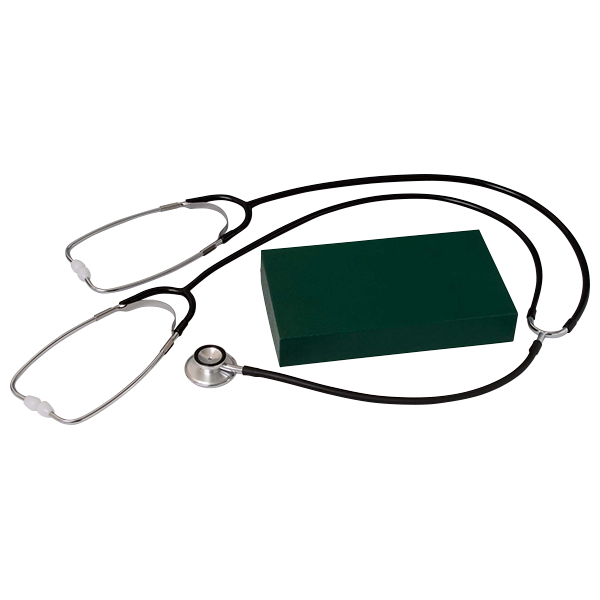Estetoscopio de dos usuarios ALPK2® NO.FT-801-W. Campana y diafragma, construcción de aluminio. 2 binaurales de latón, 2 tubos Y PVC, peso 280g.